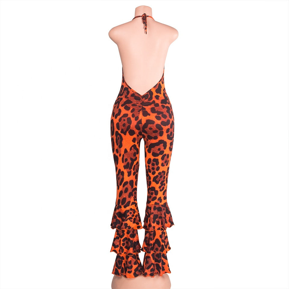 New design stylish deep V leopard printed Hollow Woman Club Dresses Sexy