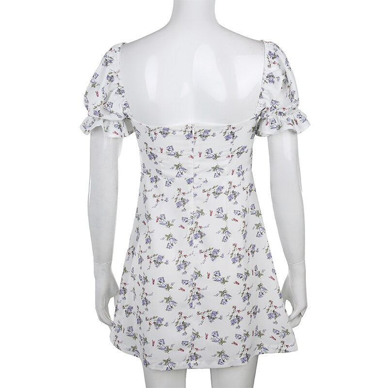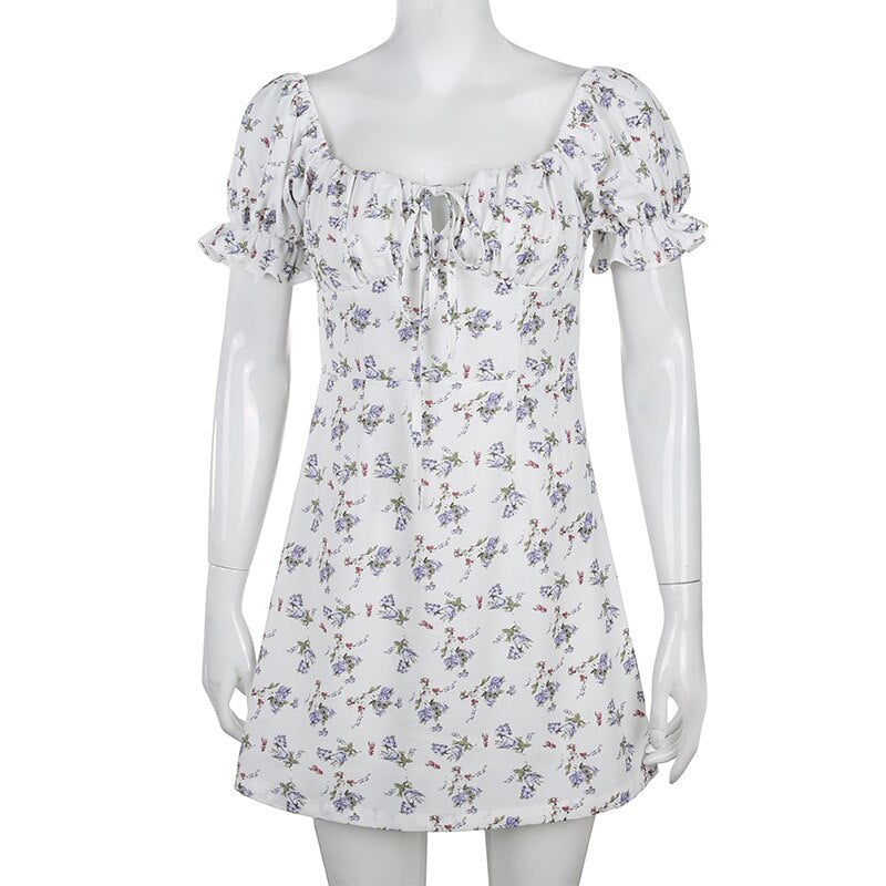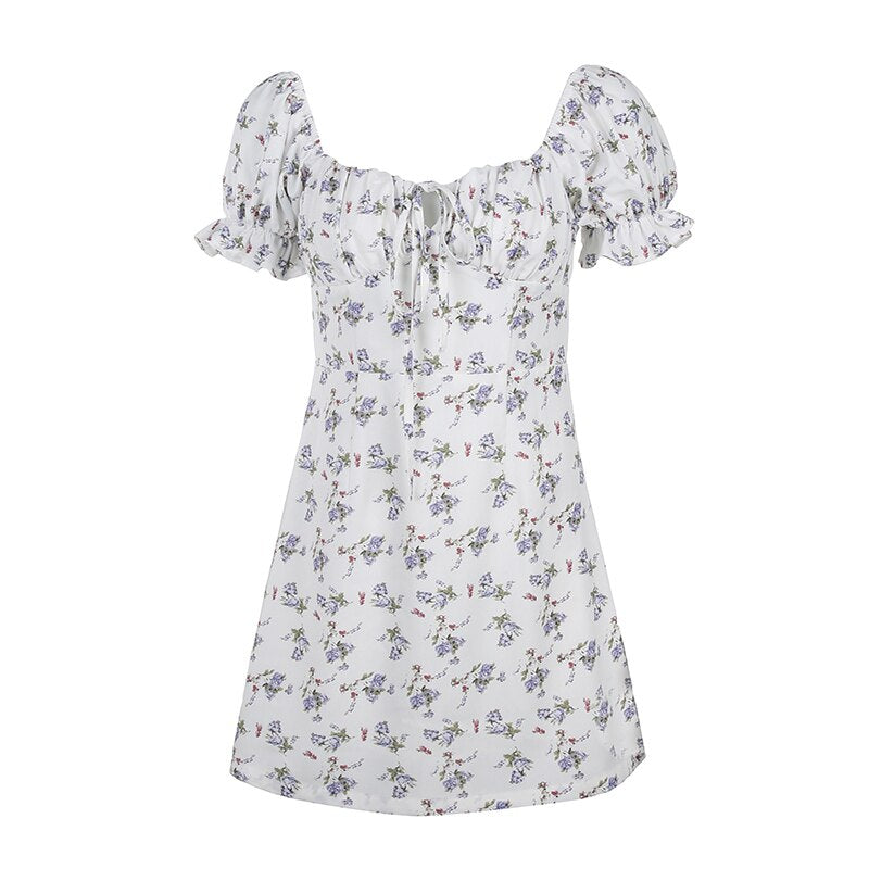 New White Floral Women Sexy Dress Bandage Ruched Office Puff Sleeve High Street Aline Ladies Dresses Summer Casual Mini Dress