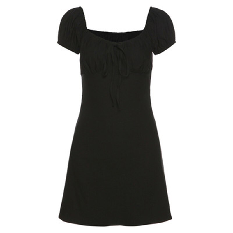 puff sleeve sexy low collar slim black dresses woman elegant simple high street female fashion party club mini dress