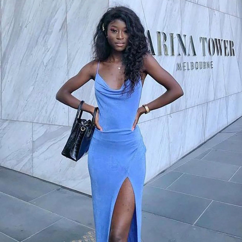 Sexy Cut Out Sling Deep V Maxi Dress Women Elegant Sleeveless Backless Club Party Holiday Split Fashion Dresses Clothes