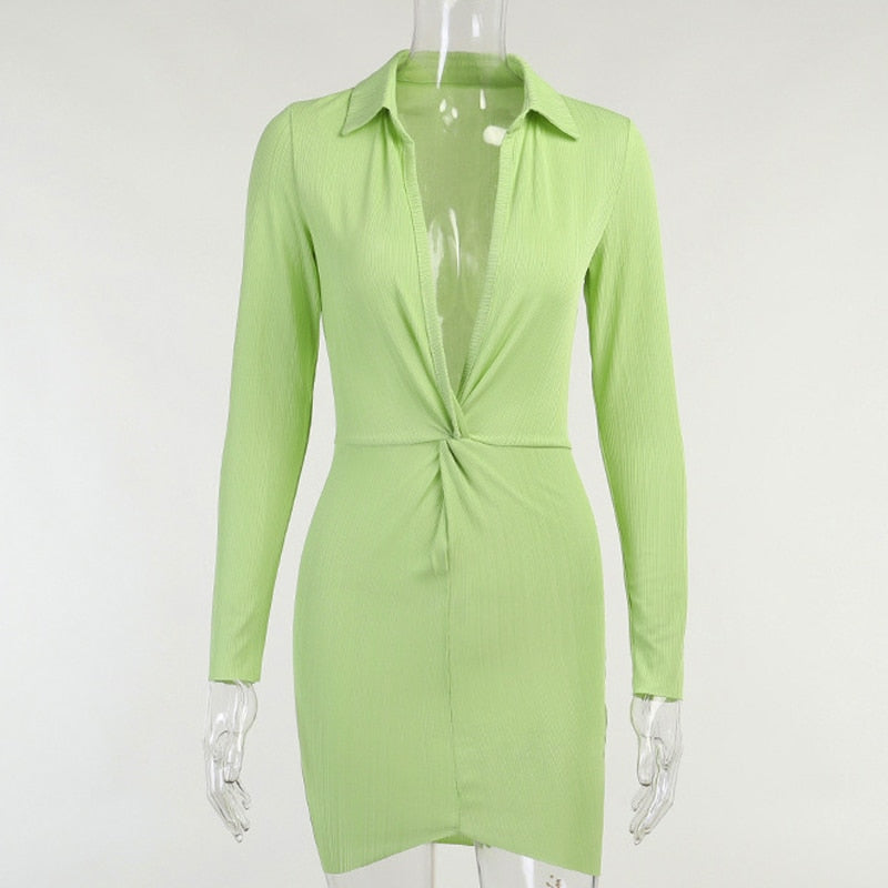 Sexy Long Sleeve Shirt Dresses for Women 2021 Autumn Winter Dreep V Neck Party Dress Bodycon Mini Wrap Ladies Short Dresses Y2K