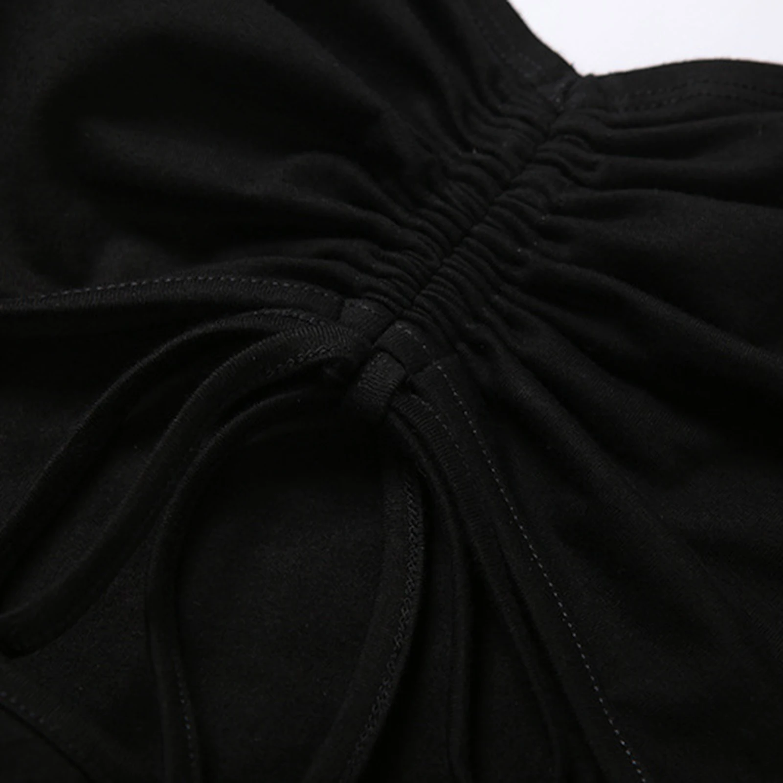 V neck, high waist and drawstring design at front of the waist.