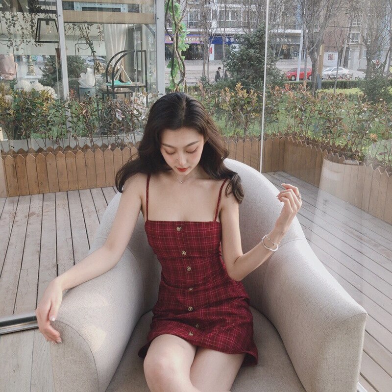 Summer Sexy Backless Buttons Spaghetti Strap Mini Dresses For Women Casual New Arrival 2021 Plaid Bow Dress Woman Gothic Clothes