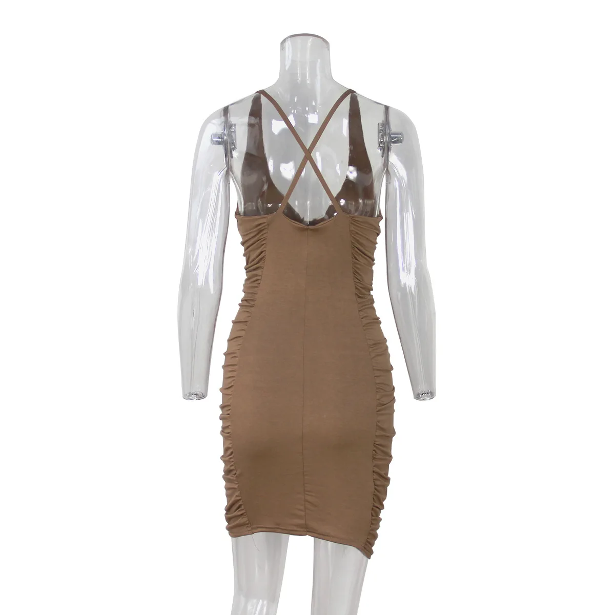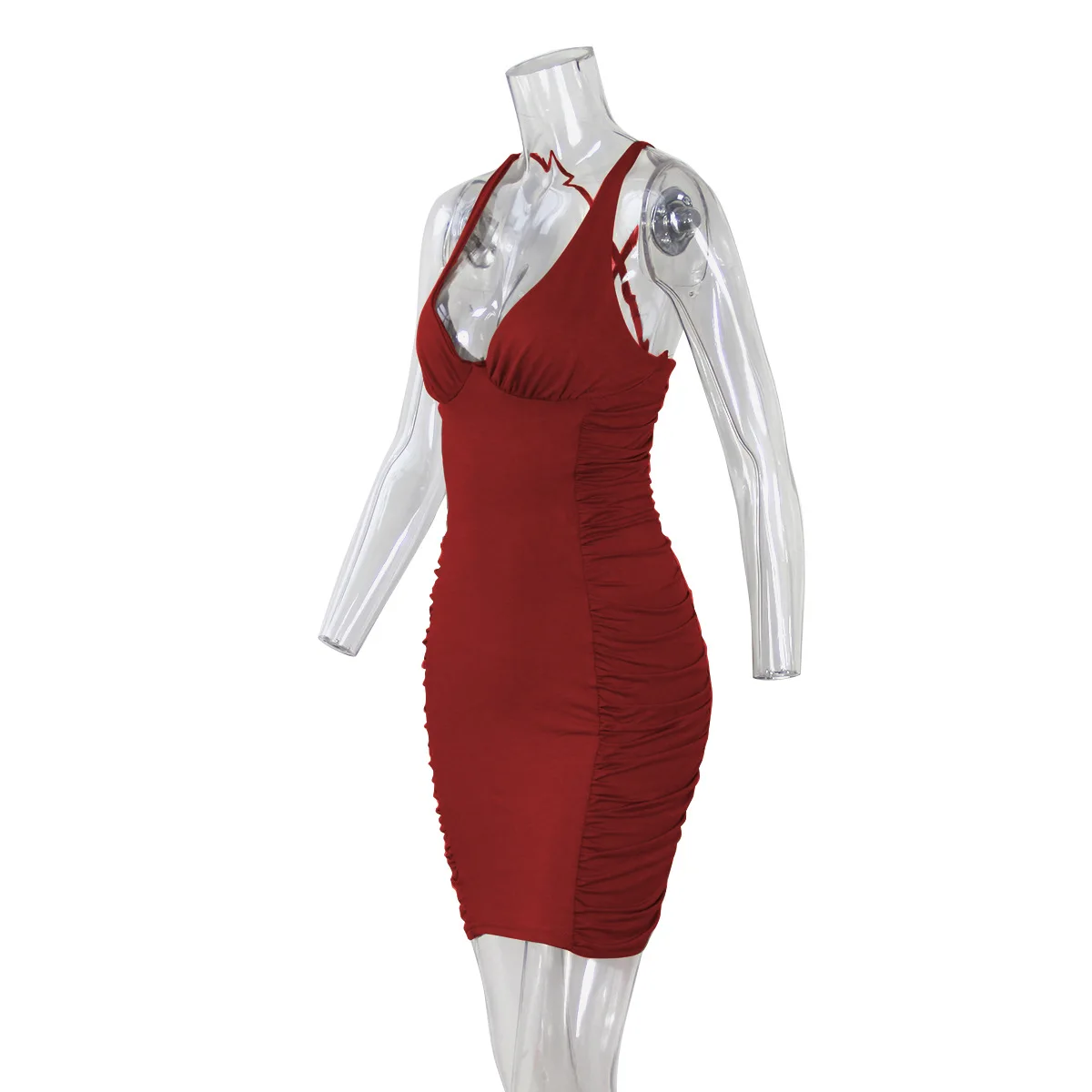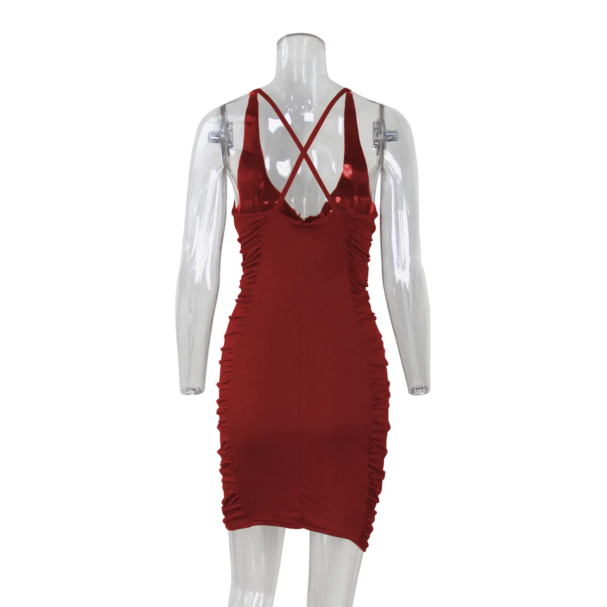 Women Bandage Dresses V Neck Ruched Bodycon Mini Dress Hollow Out Slim Bodycon Party Dresses Woman Dress White Dress Vestidos