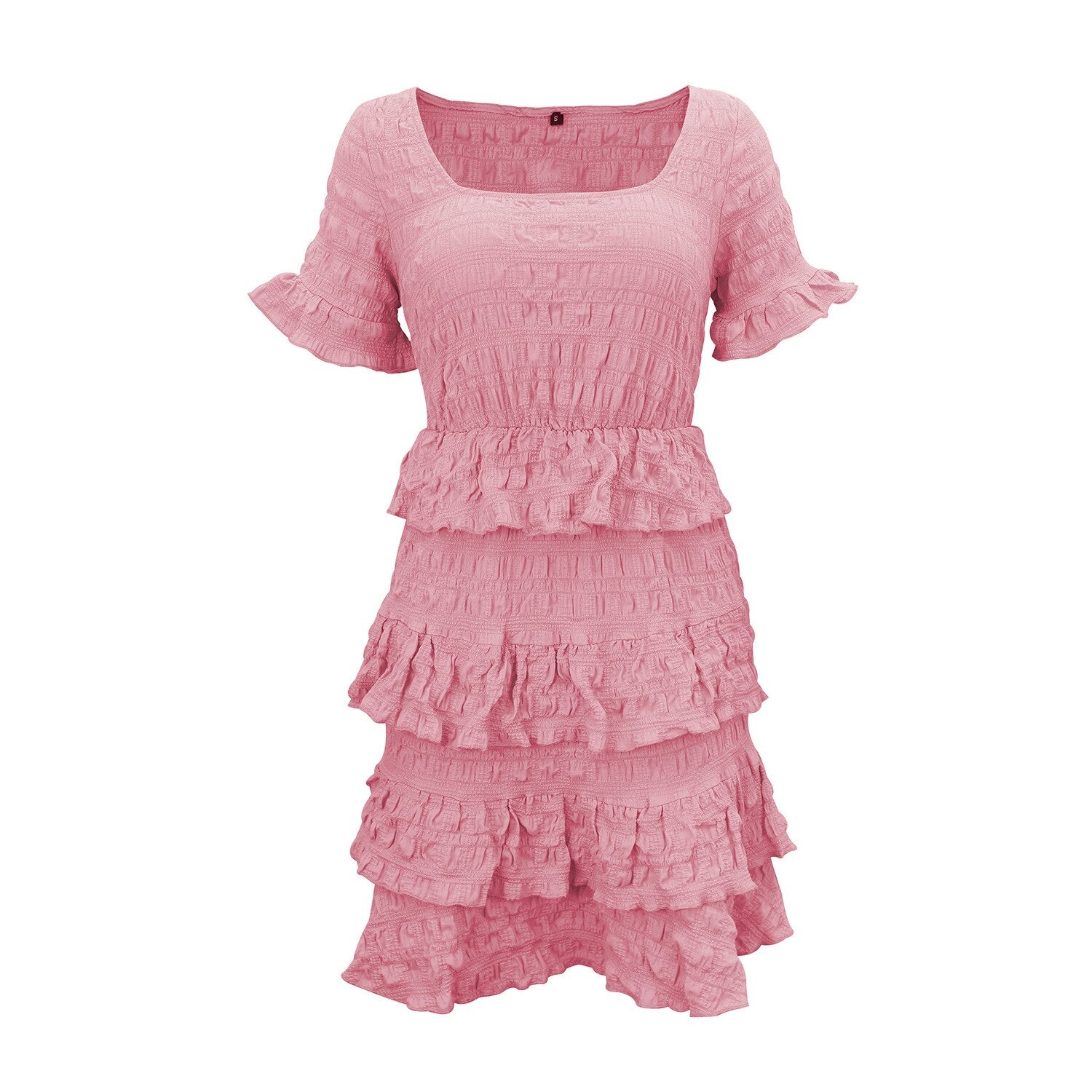 Women Elegant Cascading Ruffle Party Dress Ladies Sexy O Neck Short Sleeve Mini Dress 2021 New Summer Girl Sweet Solid Dresses