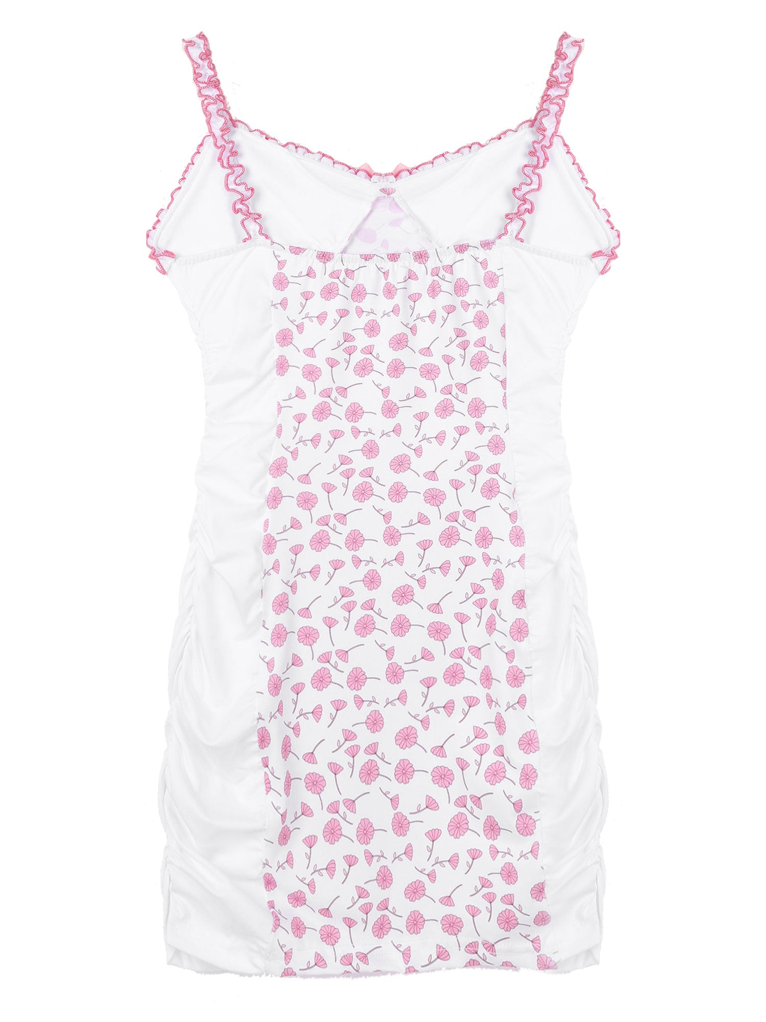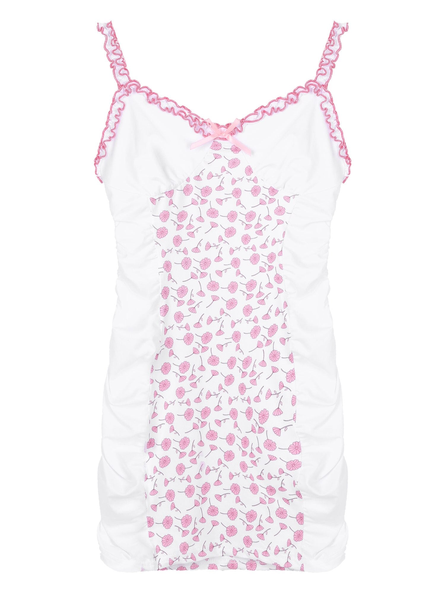 Features ruffled elastic shoulder straps, pleated detail on both sides, sleeveless, floral print, slim fit.