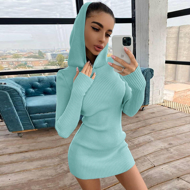 Y2K 2022 Spring Autumn Fashion Black Long Sleeves Hoody Mini Womens Knitting Dresses Base Party bodycon Outfits Clothes