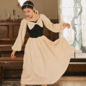 • Retro French Style Woman Dress Vintage Chic Design Bow Embroidery Patchwork Lady Midi Dresses For Party Night Robe Vestido Festa
