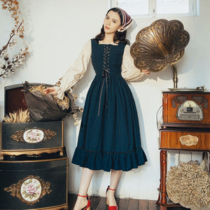 • Vintage Cottage Style Mori Girl Dress European Medieval Cotton Linen Long Sleeve Retro Woman Prairie Chic Lawn Dresses Autumn