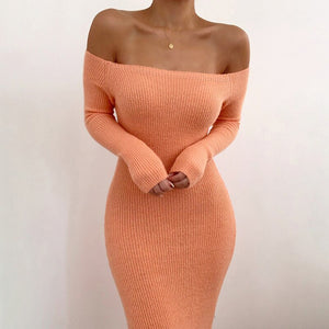 Women Dress Sexy Long Sleeve Folds Dresses Slim Elastic Bodycon Party Dresses Off Shoulder Autumn Bandage Dress Female Clothes
