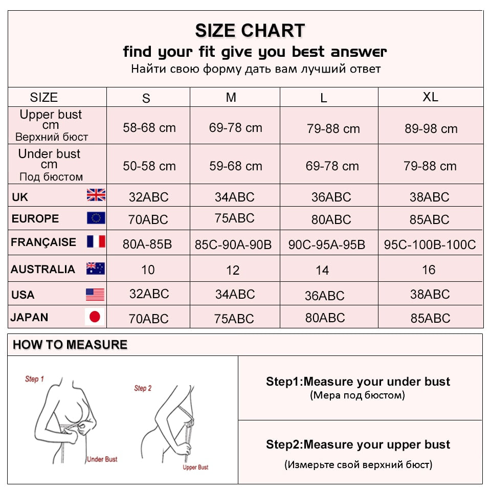 For example,if you wear UK size 36B,then you can match the size chart choose size M,or if you choose EU size 80C,then you can match the size chart choose size L.