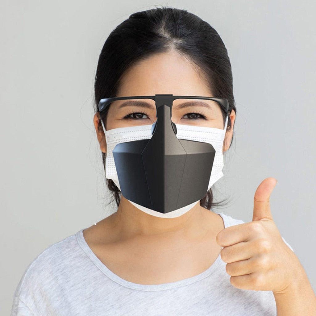 This product perfectly solves the above problems. It is easy to wear, perfectly shields external droplets, breathes smoothly, and does not have a dull feeling for a long time. Even if you wear glasses, you can use this product at the same time, and the glasses will not generate mist. Or when the aircraft is in a tight space, you can wear the product outside the mask to add a layer of safety . The modern feel of the product makes a fashion!