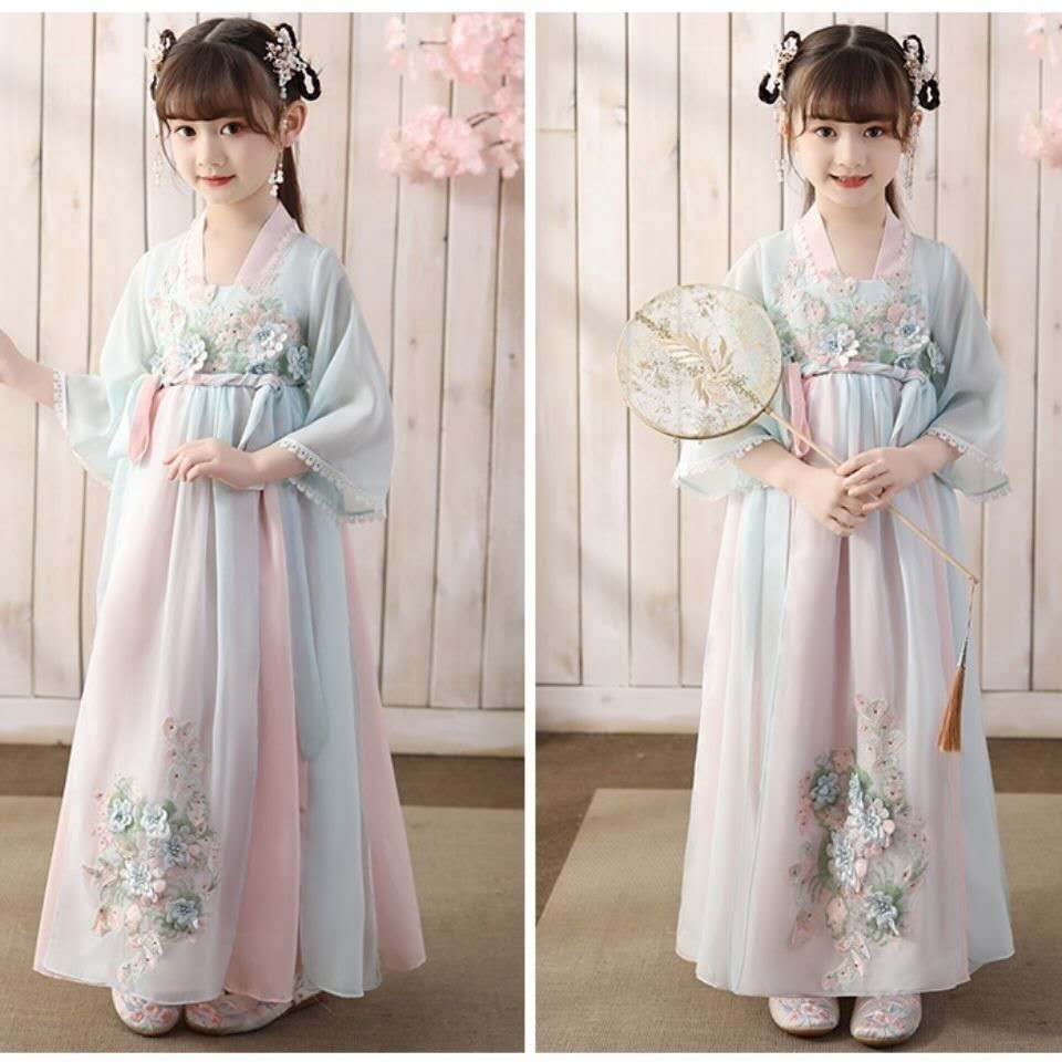 2021 Ancient Hanfu Girls Oriental Chinese Costume Kids Traditional Chinese Dress Children Fairies Tang Dynasty Performance Wear
