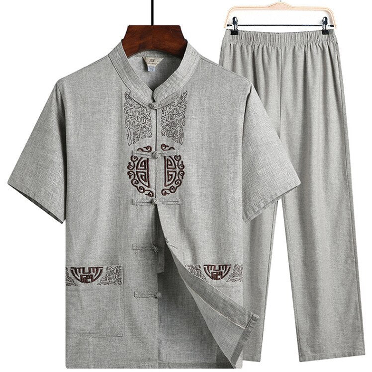 Hanfu Linen Shirts Men Wushu Traditional Chinese Pants Qing Dynasty Clothing For Pantalon Wing Chun Roupa Oriental
