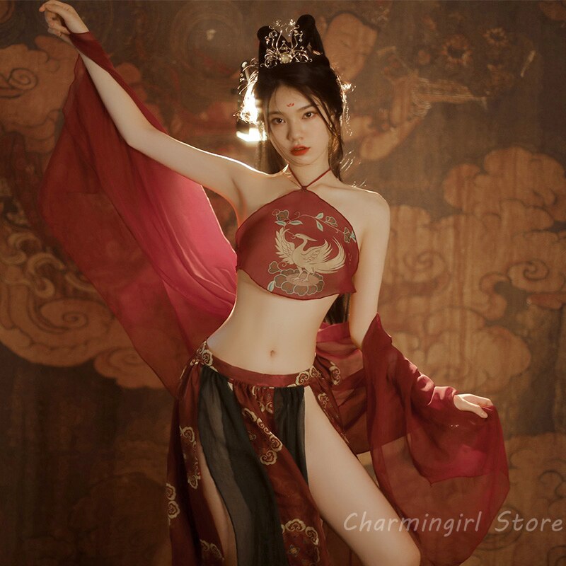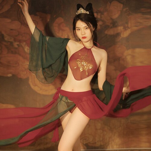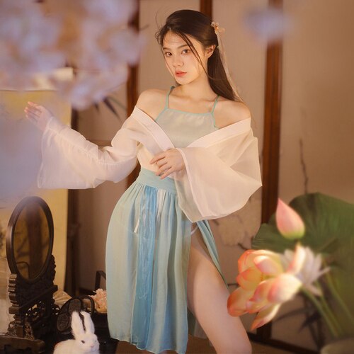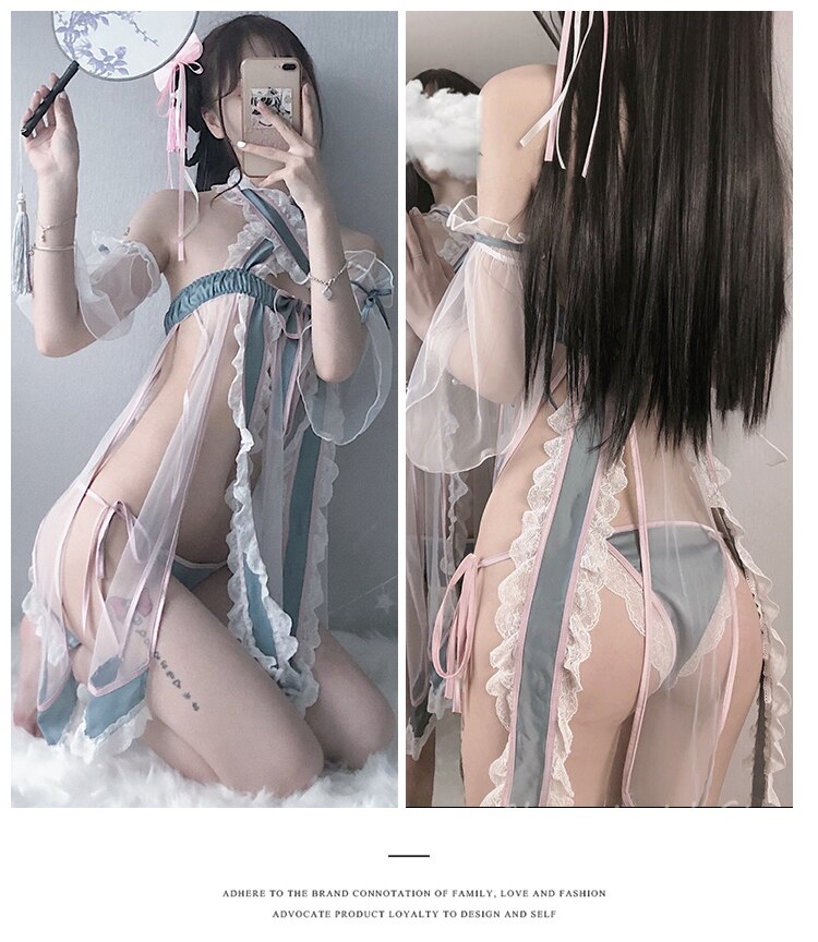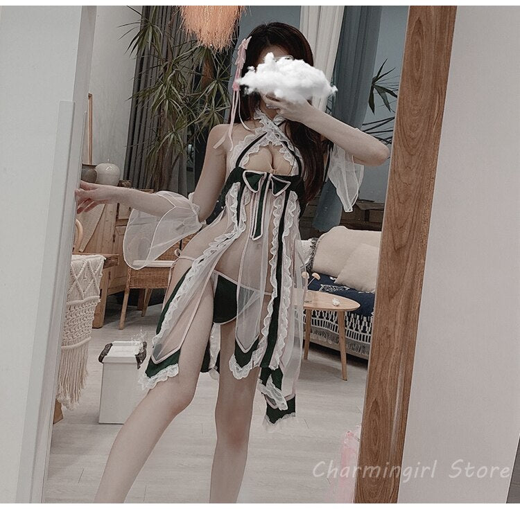 Retro Sexy Night Dress Net Gauze Perspective Temptation Classical Split Hanfu Maid Halloween Outfits for Women Cosplay Lingerie