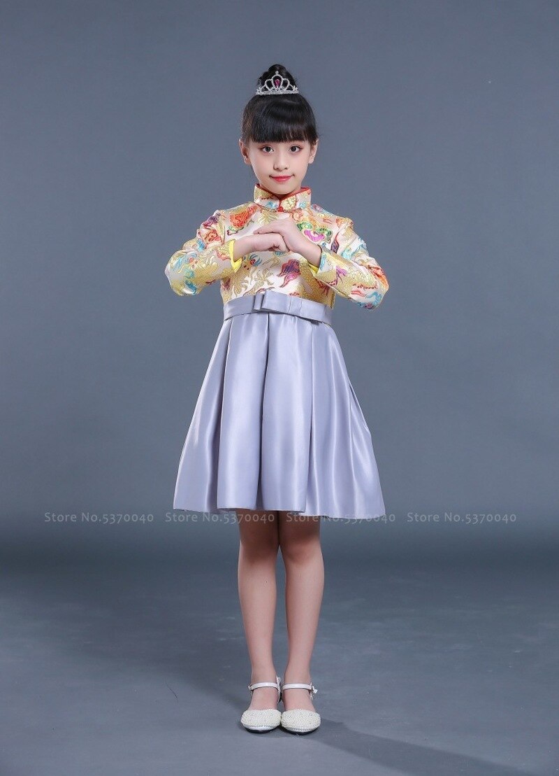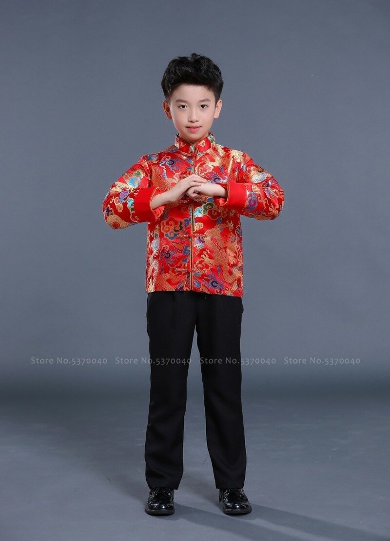Traditional Chinese Tang Suit Girl Princess Children Host Evening Formal Dress Kids Boy Hanfu New Year Festival Jackets Costumes