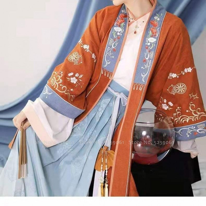 Women Traditional Chinese Style Hanfu Retro Embroidery Fairy Princess Dress Folk Dance Party Outfits Qipao Cosplay Costume Set