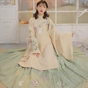 Hanfu New Ancient Style Chinese Style Embroidery Women's Two-Piece Suit Improved Cheongsam Stand Collar Soft Skin-Friendly Dress