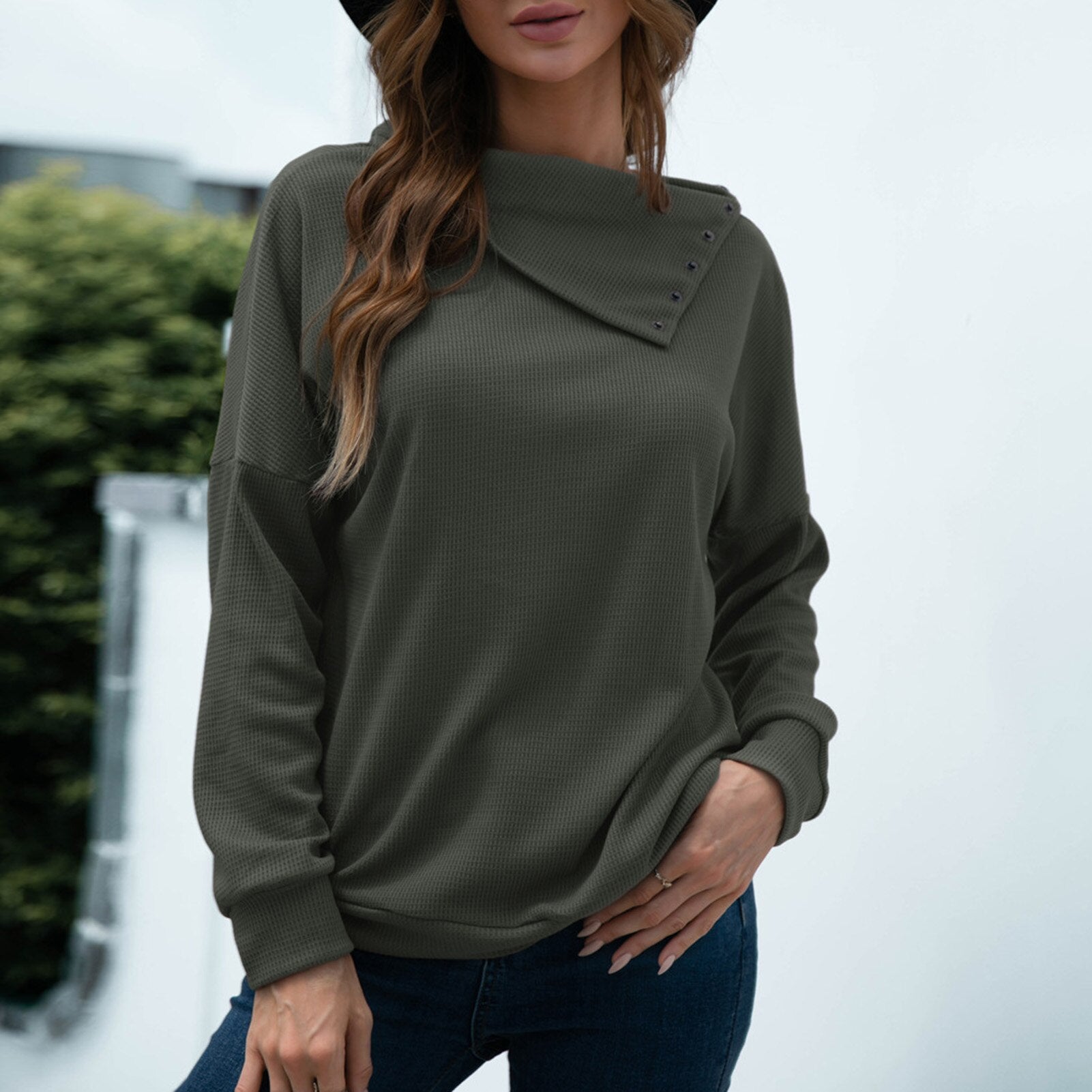 Loose casual tops in waffle-knit feature an asymmetric turn-down collar, long sleeves, and solid color, soft and comfy to wear on fall and winter days. Add it to your wardrobe for a new look.