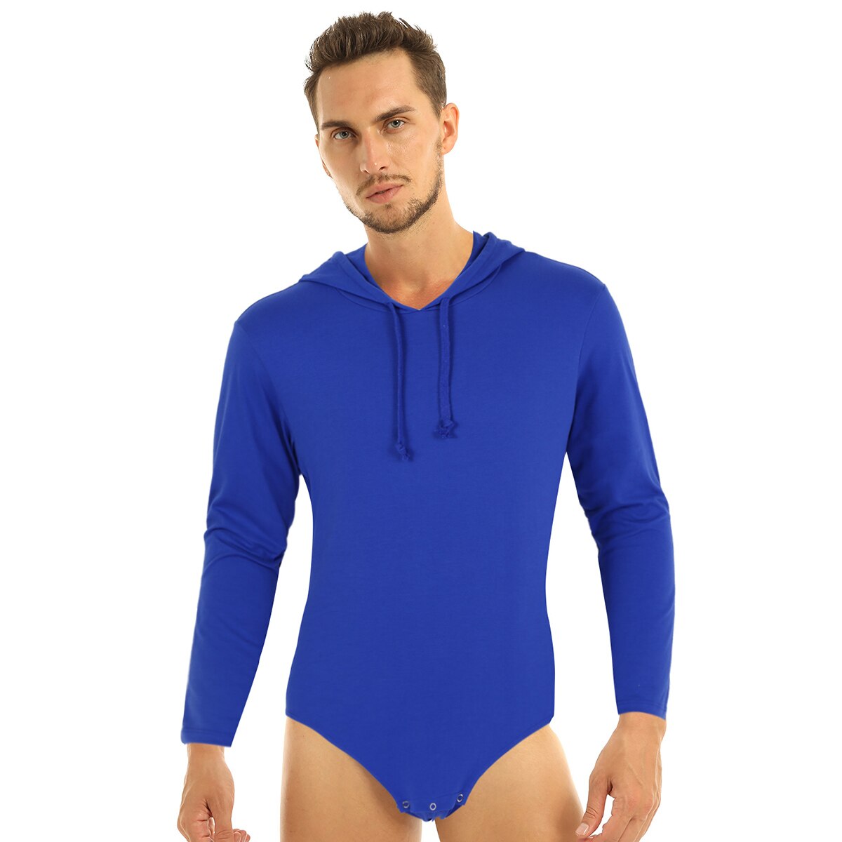 Adult Babies Mens Lingerie Hoodies One-piece Long Sleeves Press Crotch Bodysuit Bodystocking Jockstraps Sissy Gay Romper Pajamas