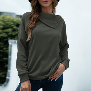 2021 Autumn Pullovers Solid Warm Turn-down Collar Long Sleeves Waffle-knit Comfy Tunic Sweatshirts Casual Loose Solid Color Tops