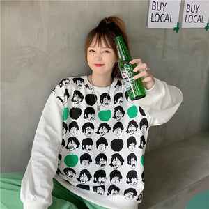 2021 Autumn Spring Fall Hoodies Women's Top Long Sleeve Loose Casual Sweatshirt Character Avatar Printing Ladies Korean Fashion