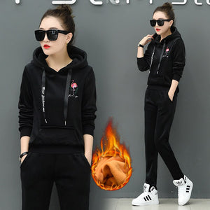 Winter Velvet Tracksuit Women Two Piece Set Warm Clothes Hoodies Fleece Sweatshirt and Pants Velour Suits Female Thicken Outfits