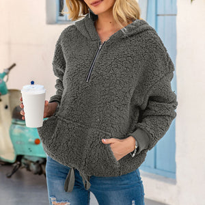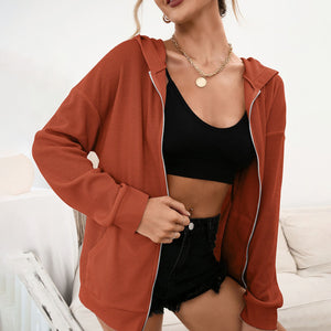 New Sweatshirt 2021 Autumn And Winter Warm And Comfortable Top With Elegant Loose Pure Color Zipper Stand Collar Hoodies Women