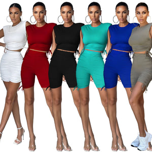 Sexy Women Two Piece Sets Crop Tops Shorts Tracksuit Suits Casual Sports Overalls Sweatshirts Solid color