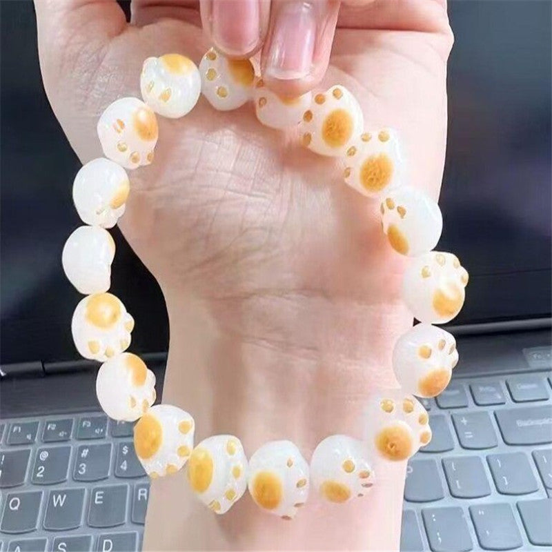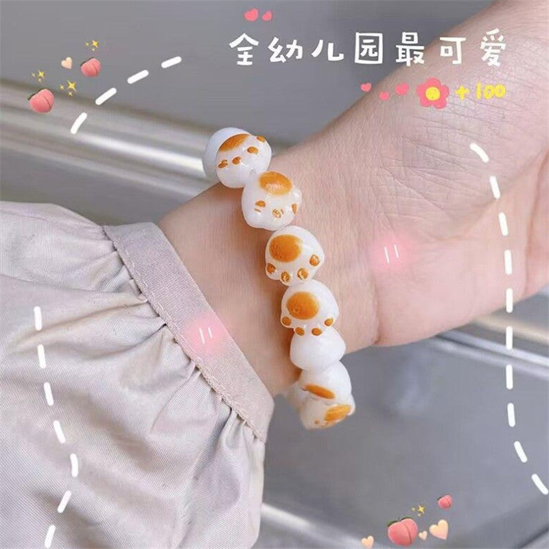 Cute cat claw hand string charcoal grilled finger soft gradient white jade Buddha bead plate play bracelet rosary ins girl heart bracelet