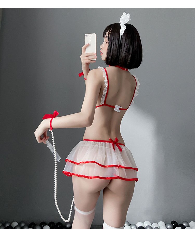 Net Red Erotic Lingerie Sweet Beauty Nurse Sexy Temptation Perspective Role Playing Passion Slutty Stockings Fishnet Seduction