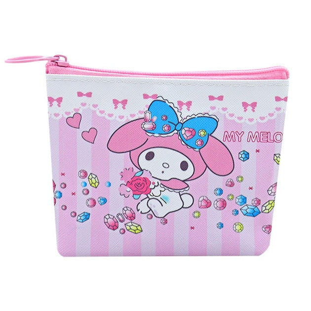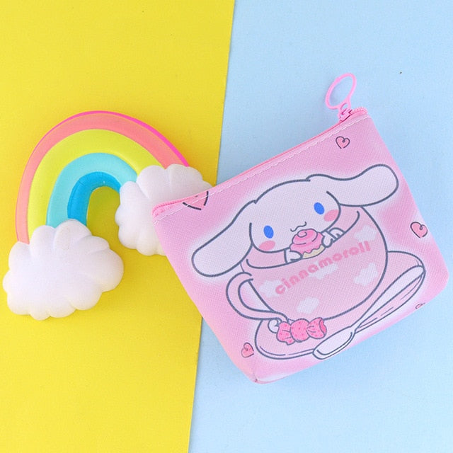 Original Sanrio Anime Wallet Hello Kitty Women Bag Kulomi Melody Cinnamoroll Cartoons Mini Coin Purse Portable ID Card Holders