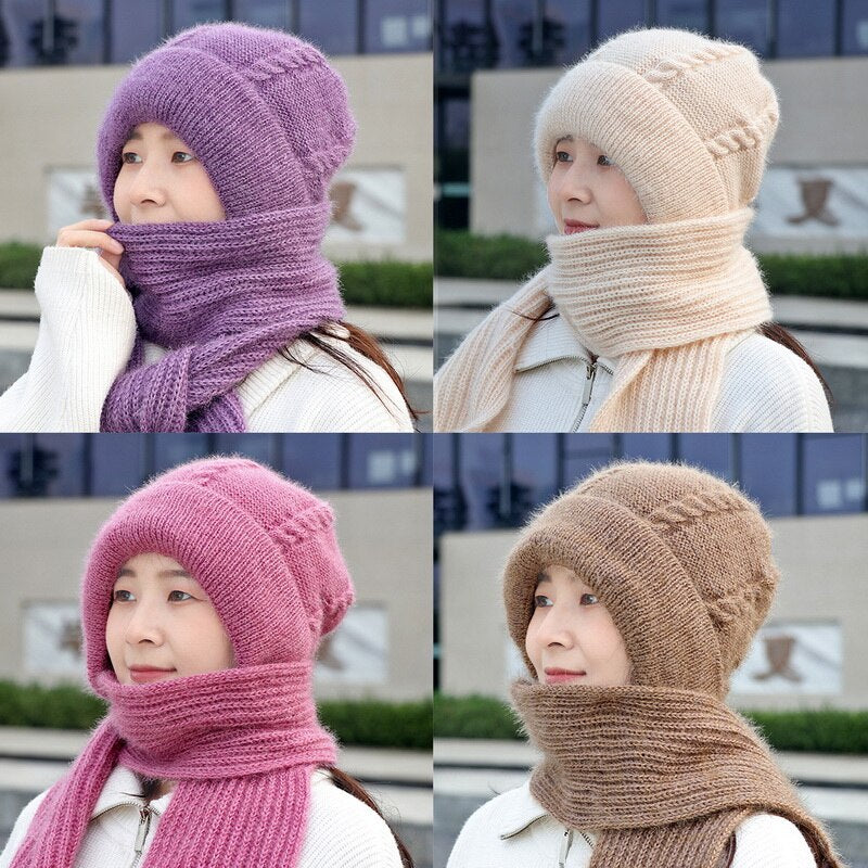 Women Winter Knitted Windproof Cap Scarf Knitting Thickening Hat Female Wool Hat Plus Velvet Ski Mask Hat Ear Protection Cap New