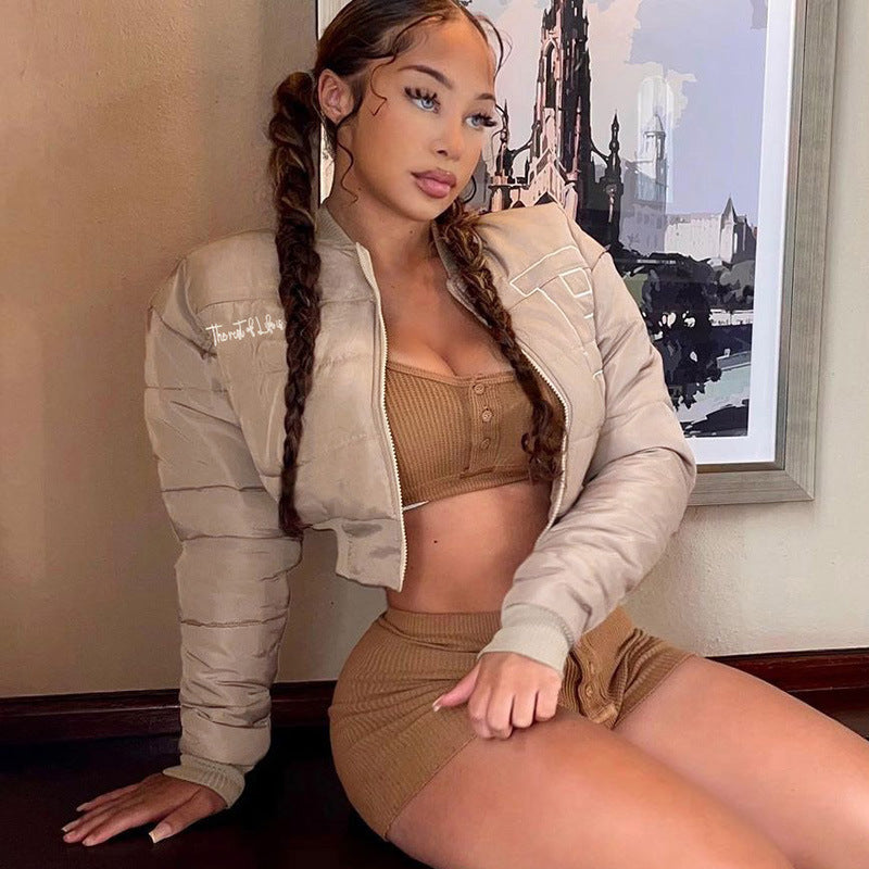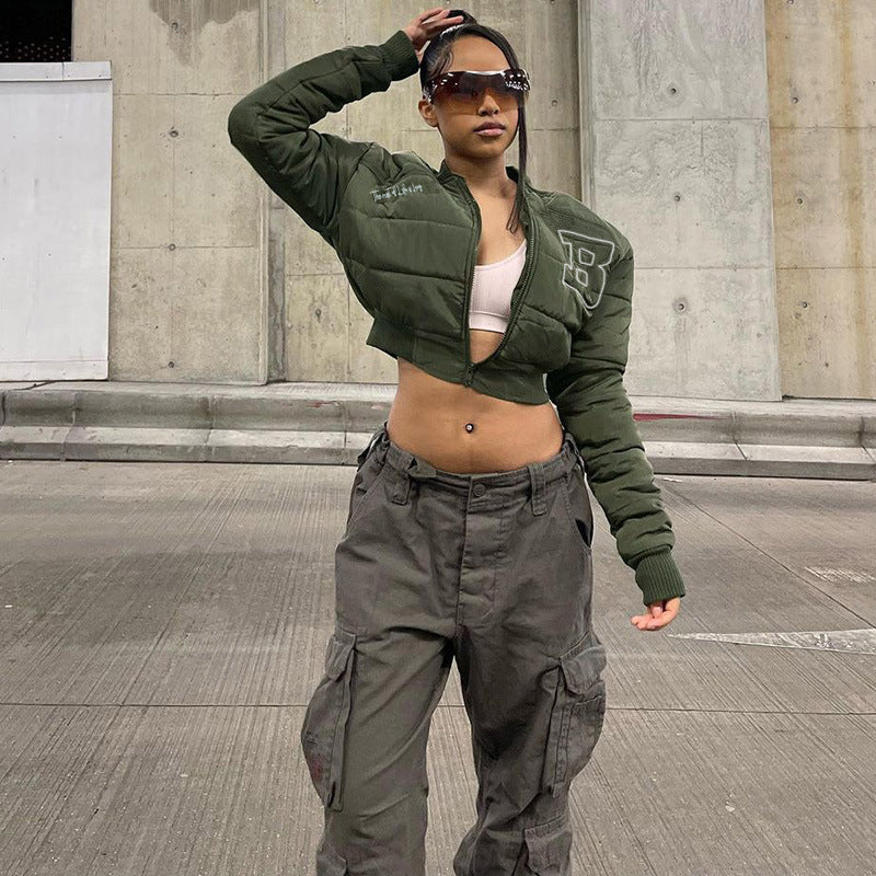 Fall 2023 Women Cropped Jackets Coats Letter B Zipper Pocket Streetwear Coat Winter Long Sleeve Short Padded Baseball Jacket