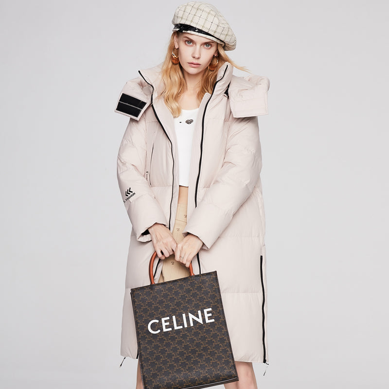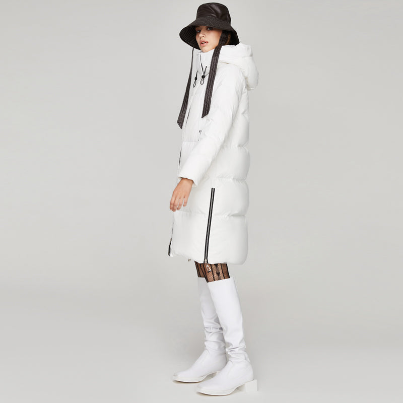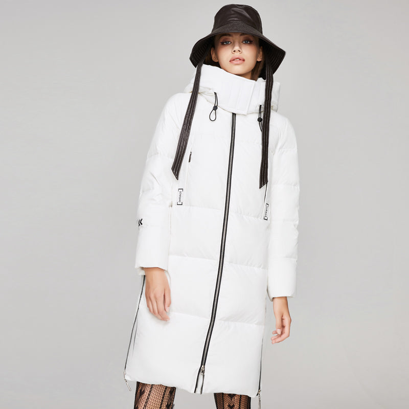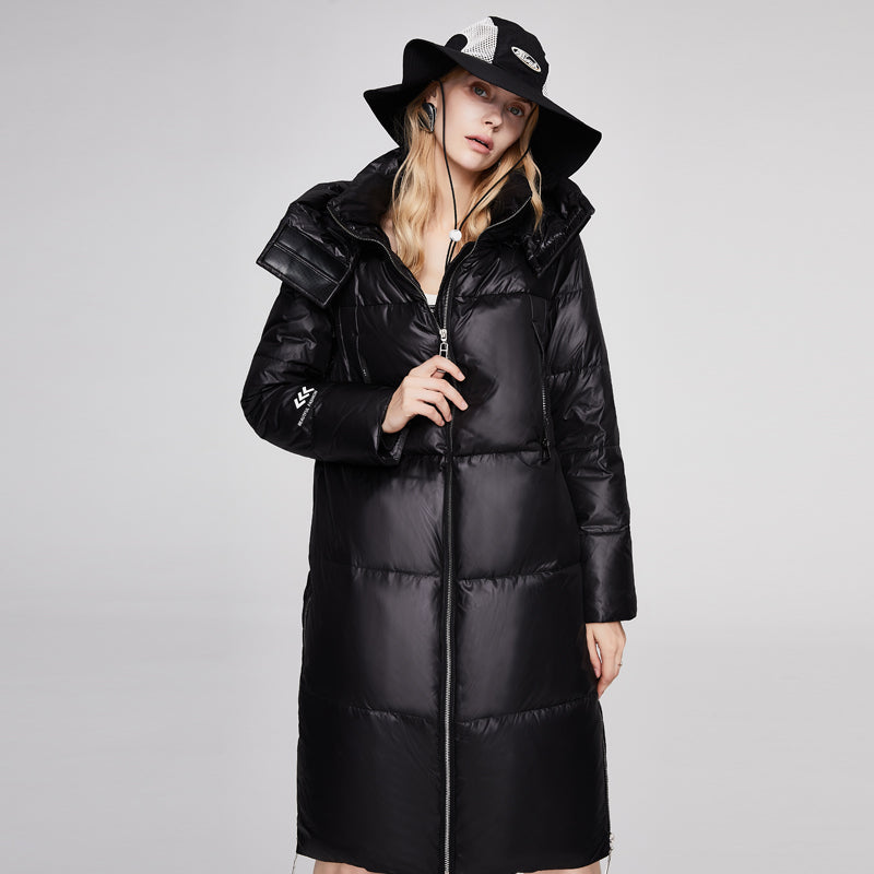 Winter high quality ladies with cap high quality windproof padded down dog jacket down jackets women long down jacket