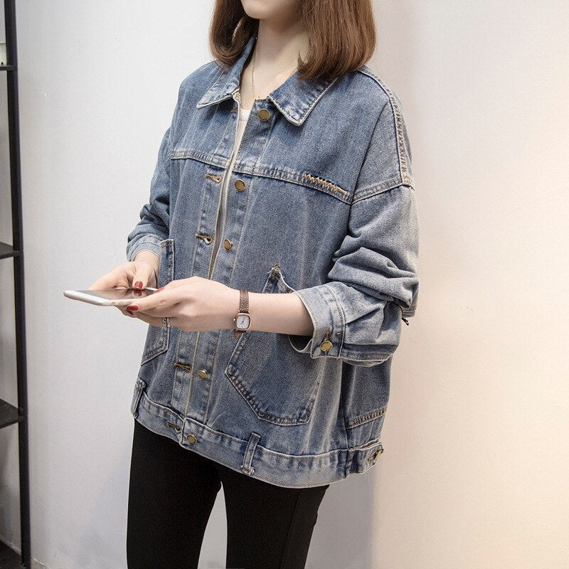 2021 Spring Autumn Winter Women's Decal Pocket Cropped Denim Top Jeans Blue Jean Patchwork Demin Jacket For Women Jackets Coat