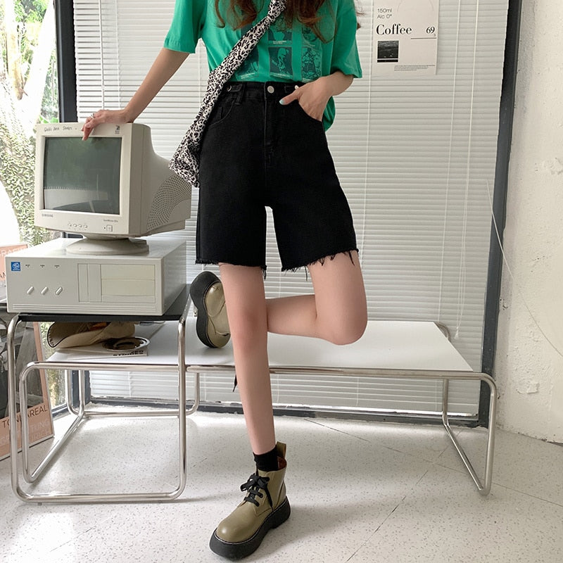 Cost-Effective 2021 New Straight Hong Kong Style Cattle High Waist Jeans Woman Plus Size Jean Short Women Pants Sexy Summer New