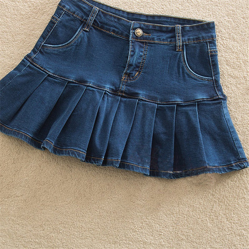 Denim Skirt With Ruffles 6XL 7XL Plus Size Jeans Skater Woman High Waist Bottom Female Casual Pleated Micro Mini Short Jurken