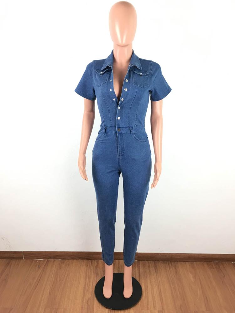 fashion clothes deep v neck slim fit denim women jeans jumpsuit
