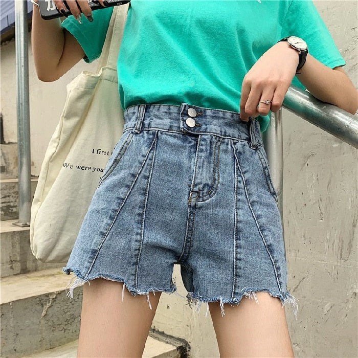 Women's Denim Shorts New High Waist 2021 Korean Style Slim Loose Summer Outdoor Wear A- Line Wide-Leg Hot Pants Fashion Jeans