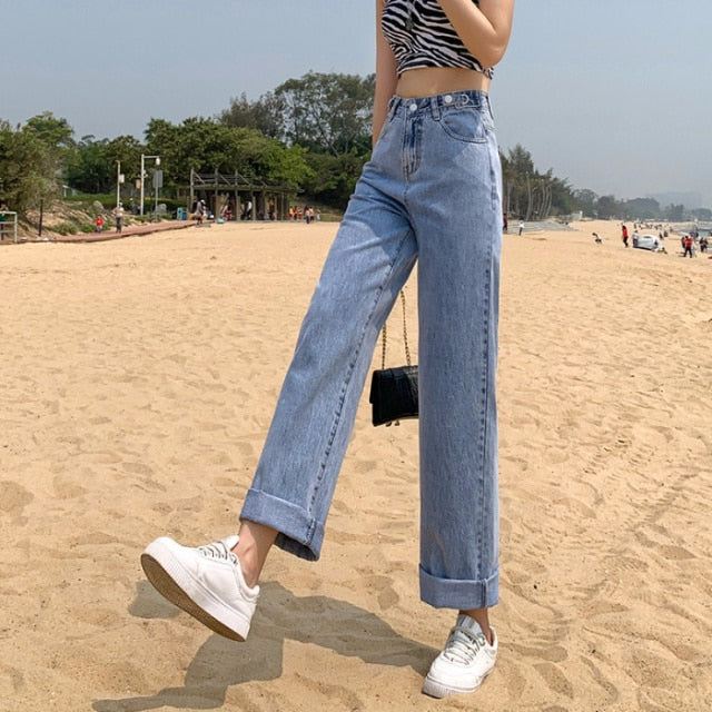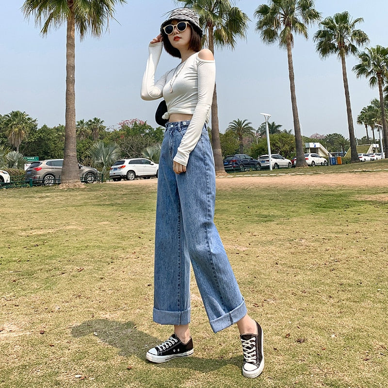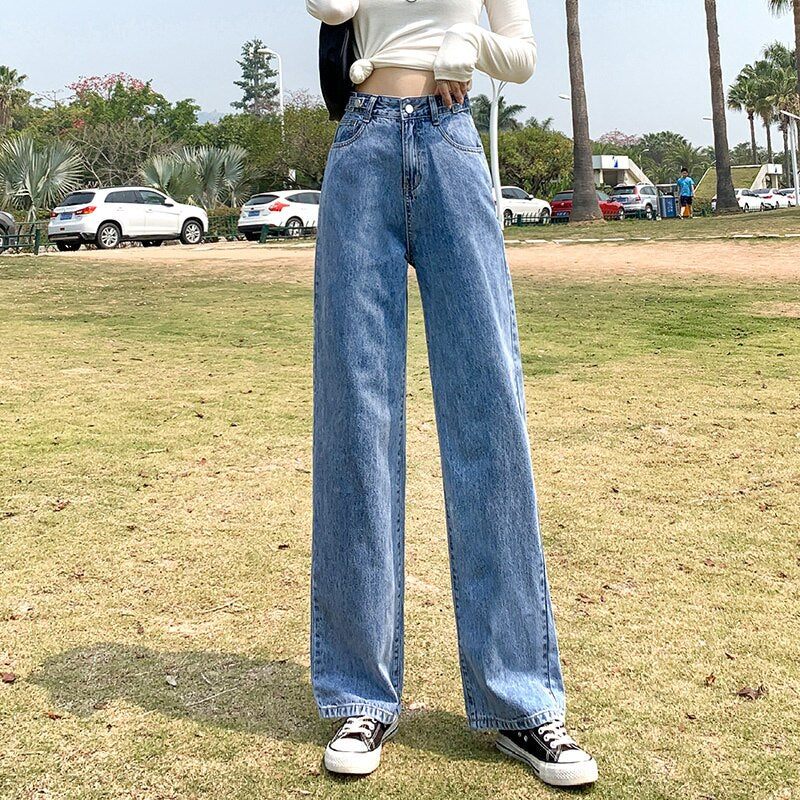Women's Wide-Leg Jeans Summer 2021 New Spring And Autumn Small High Waist Slimming And Straight Loose Drooping Mop Pants Denim