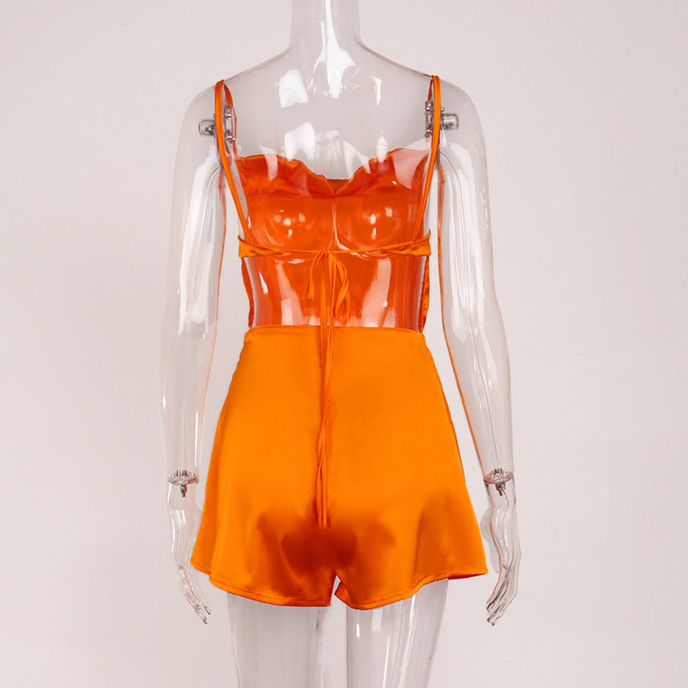 2021 Fashion Satin Romper Women Orange White One Piece Outfit Short Jumpsuit Sling Backless Bandage Jumpsuits Streetwear