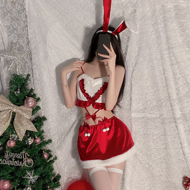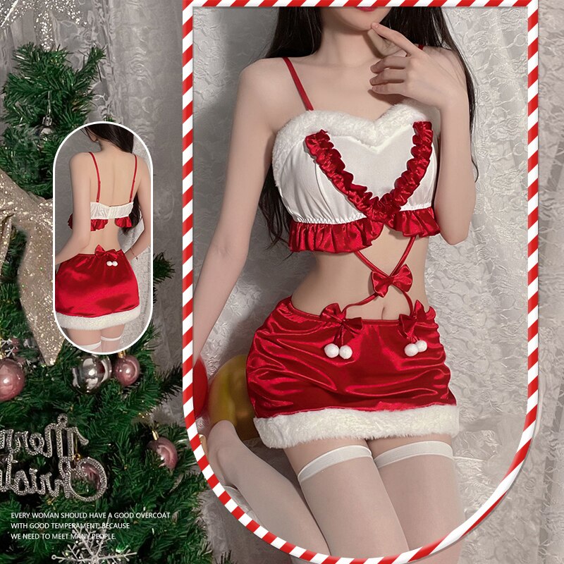 Christmas Gift Jumpsuits Night Dress Women Lace Sleepwear Bunny Girl Velvet Nightgown Pamajas Sexy Lingerie Sleep Tops Camisole