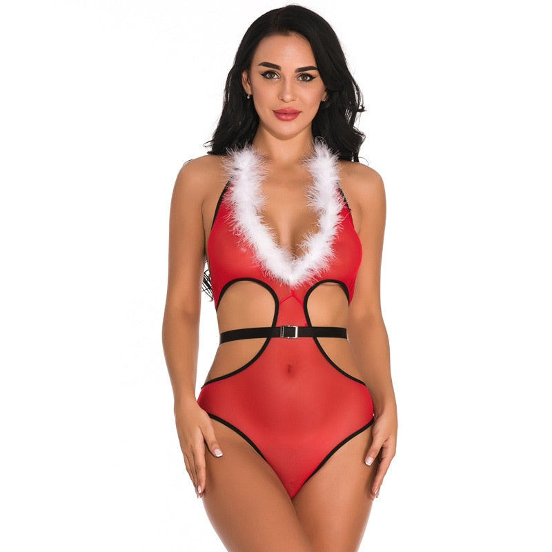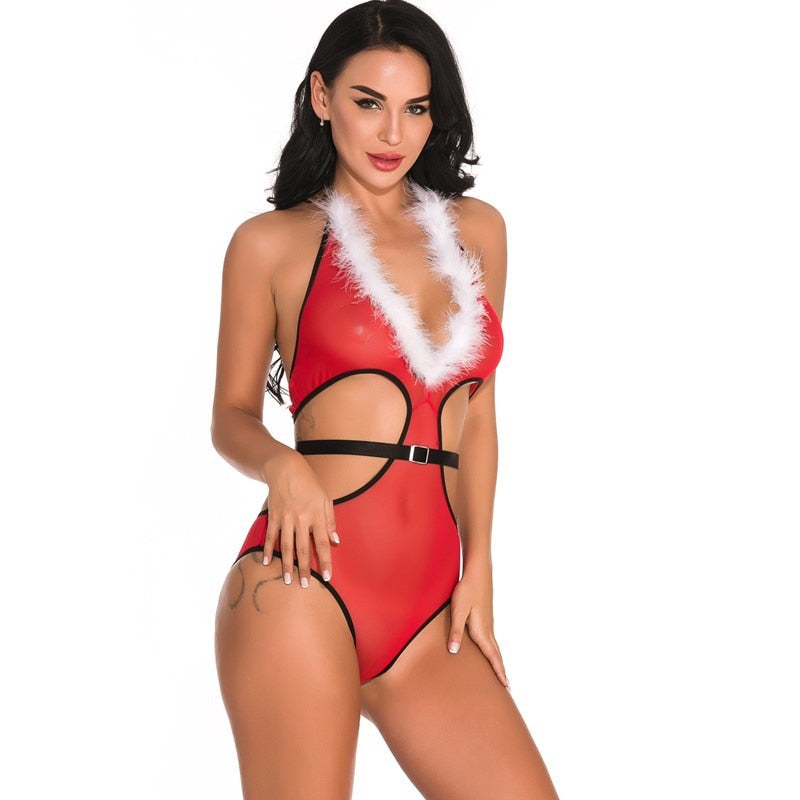 Christmas Women's Sexy Lingerie Fashion Deep V Sexy Without Steel Ring One-piece Jumpsuits Suit Erotic Apparel Large Size
