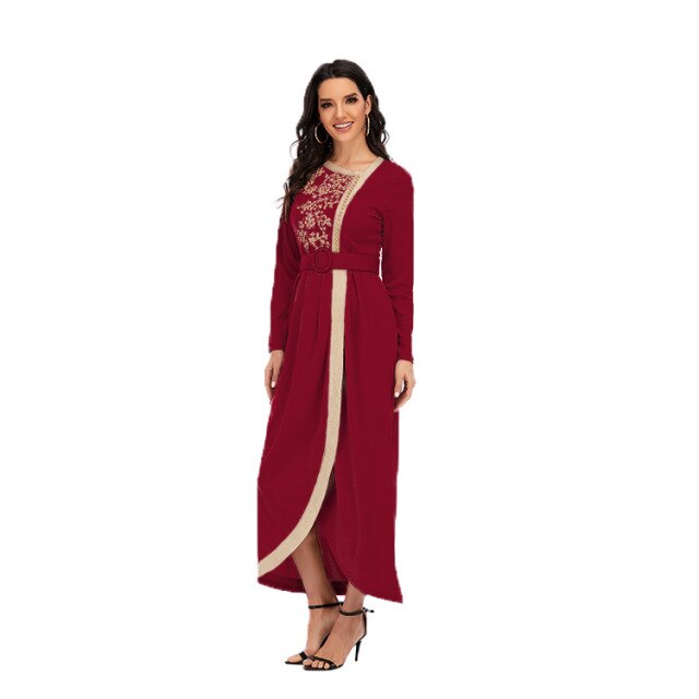 New Muslim Dress With Embroidery And Beaded Long Slim Dress With Belt Moroccan Oriental  Djellaba  2021women's Clothing Dress