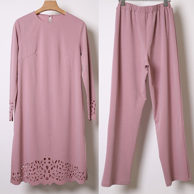 Two Piece Sets Tops and Pants Women Turkey Muslim Abaya Split Abaya Dresses Ramadan Moroccan Kaftan Islamic Clothing Dress Sets