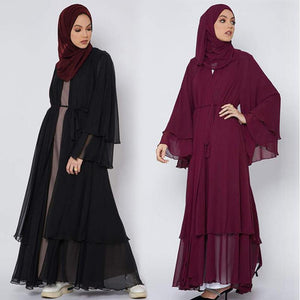Middle Eastern Muslim Clothes Women's Wear National Wind Chiffon Hui Nationality Solid Color Robe And Ankle Dress Abaya Dubai