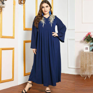 Abaya Oversized Size Women's Embroidery Long-sleeved Folds Retro Ethnic Style Polka Dot Printing Ethnic Casual Dress Muslim