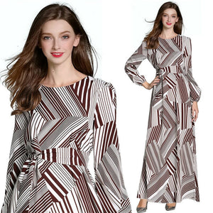 Muslim Ethnic Style New Long-sleeved Chiffon Geometric Splicing Receiving Waist Long Skirt Large Size Slim Ladies Dress