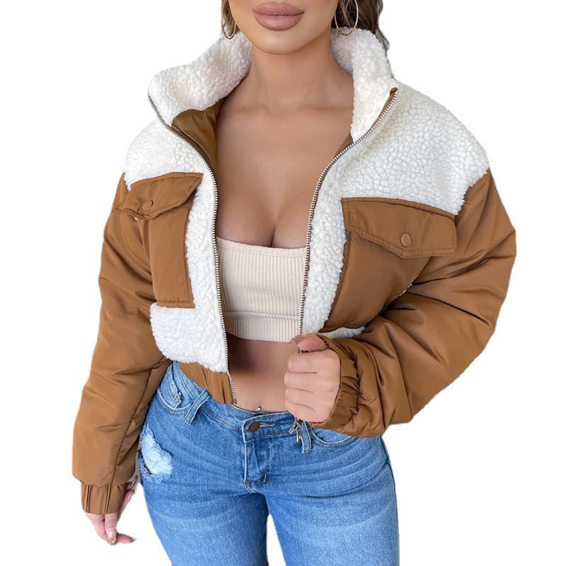 2023 New Winter Women's Parkas Fleece Cotton Coat Short Cotton Padded Coat Zipper Jacket Female